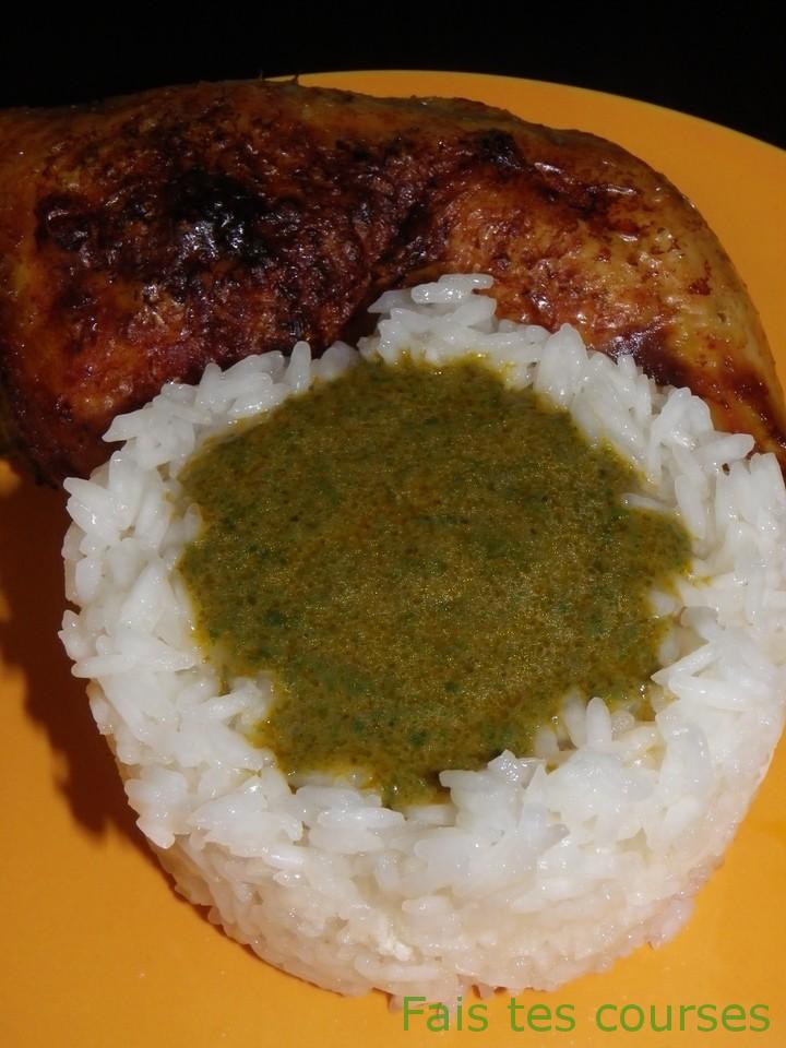 - Servir immédiatement les cuisses de poulet avec la sauce accompagnés de riz blanc.